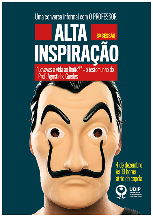 04.12.2019 13:00 ALTA INSPIRAÇÃO: Conversa com o professor Agostinho Guedes - "Levavas a vida ao limite?" Link: https:///pt/central-eventos/alta-inspiracao-conversa-com-professor-agostinho-guedes-levavas-vida-ao-limite