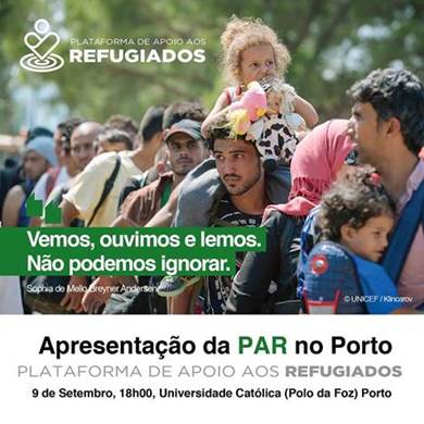 A Católica Porto acolhe amanhã 4ª feira, dia 9 de setembro de 2015, às 18h00, na Sala EC018 do campus Foz,  a apresentação no Porto da PAR – Plataforma de Apoio aos Refugiados.