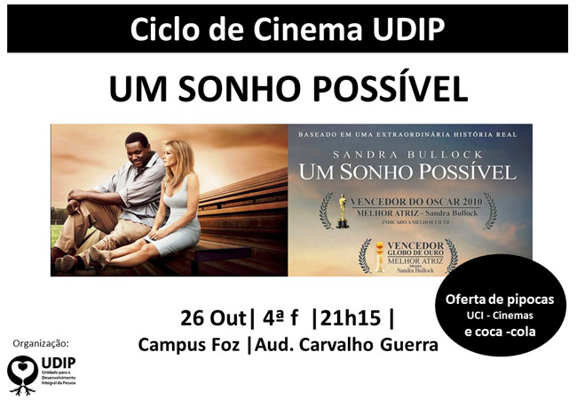 26.10.2016 20:15 Ciclo de Cinema UDIP - “Um sonho possível" Link: https:///pt/central-eventos/ciclo-cinema-udip-um-sonho-possivel