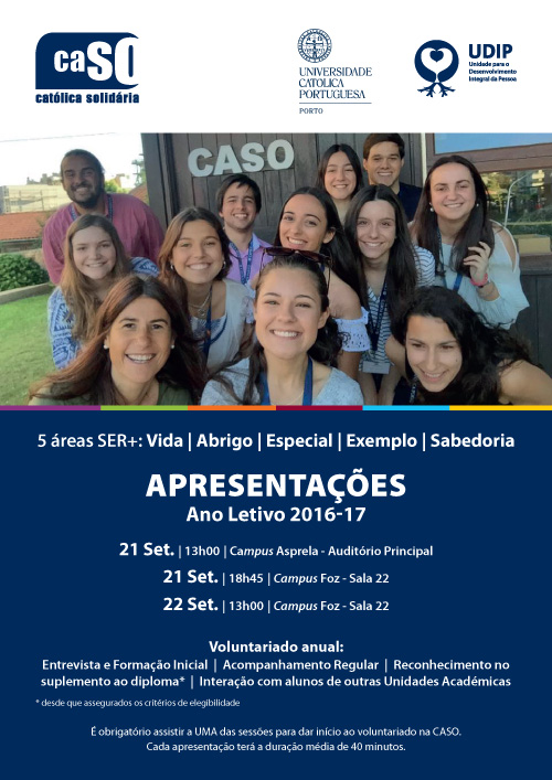 21.09.2016 12:00 Sessões de Apresentação da CASO – CAtólica SOlidária Link: https:///pt/central-eventos/sessoes-apresentacao-caso-catolica-solidaria