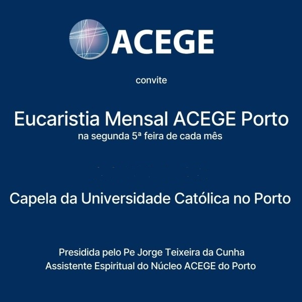 In 2025, the Christian Association of Entrepreneurs and Managers - Porto (ACEGE), in collaboration with the Universidade Católica in Porto, will hold a Mass on the second Thursday of each month, in our chapel, open to the community.